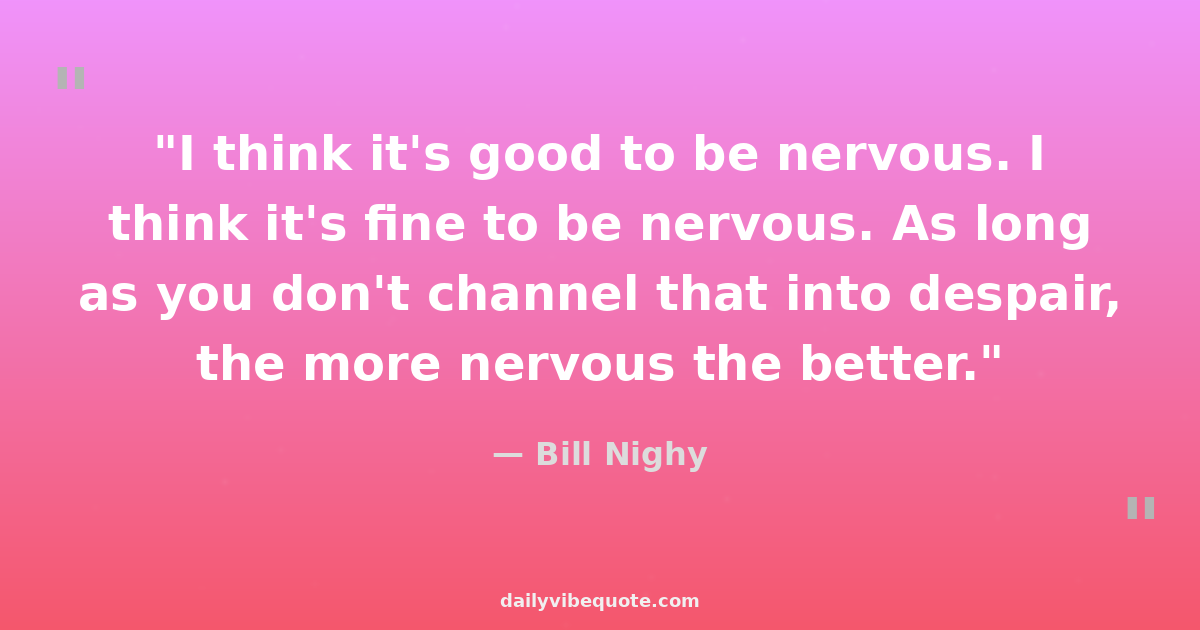 "I think it's good to be nervous. I think it's fine to be nervous. As long as you don't channel that into despair, the more nervous the better."
