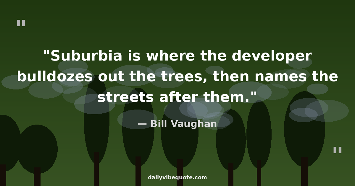 "Suburbia is where the developer bulldozes out the trees, then names the streets after them."