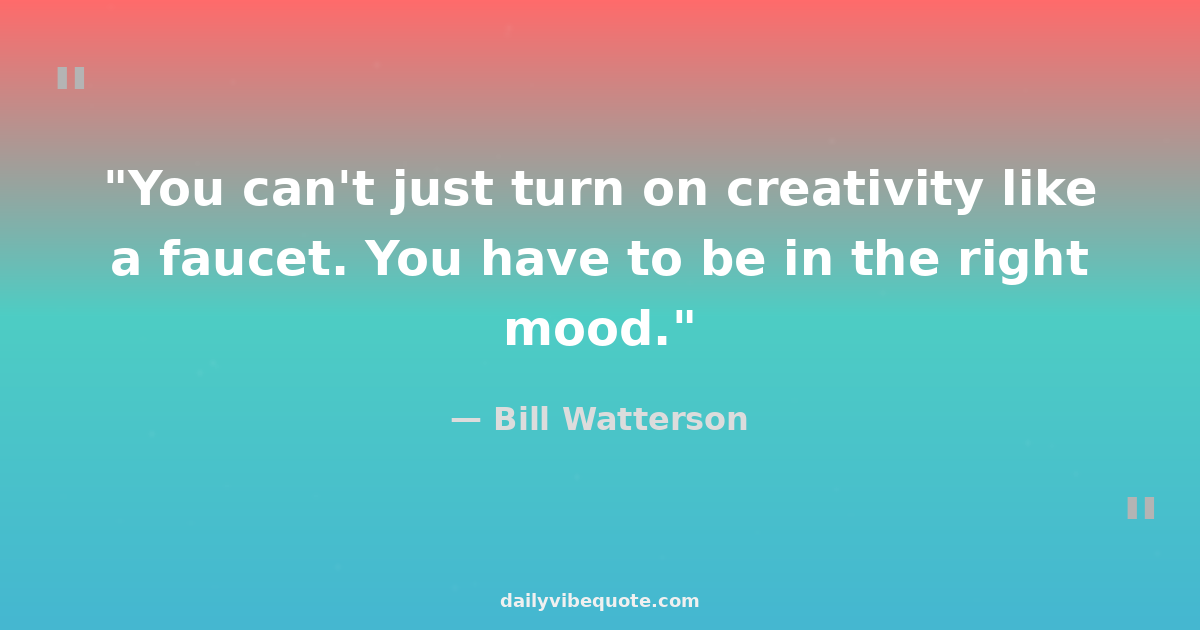 "You can't just turn on creativity like a faucet. You have to be in the right mood."
