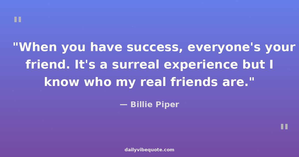 "When you have success, everyone's your friend. It's a surreal experience but I know who my real friends are."
