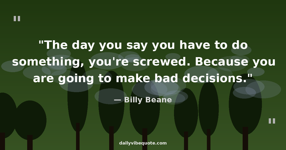 "The day you say you have to do something, you're screwed. Because you are going to make bad decisions."