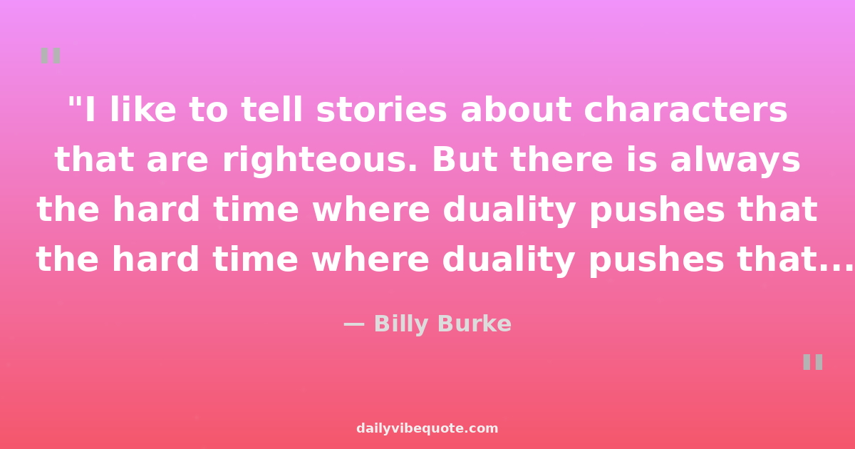 "I like to tell stories about characters that are righteous. But there is always the hard time where duality pushes that righteousness to the point of being offensive."