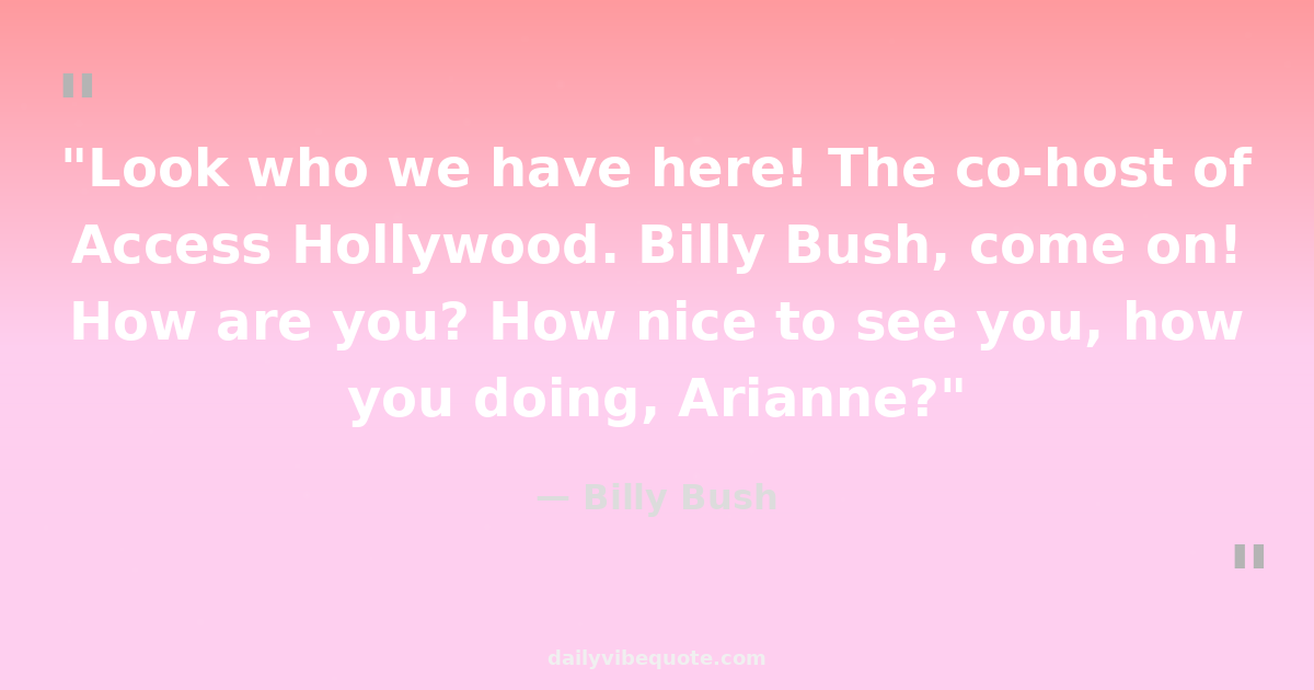 "Look who we have here! The co-host of Access Hollywood. Billy Bush, come on! How are you? How nice to see you, how you doing, Arianne?"