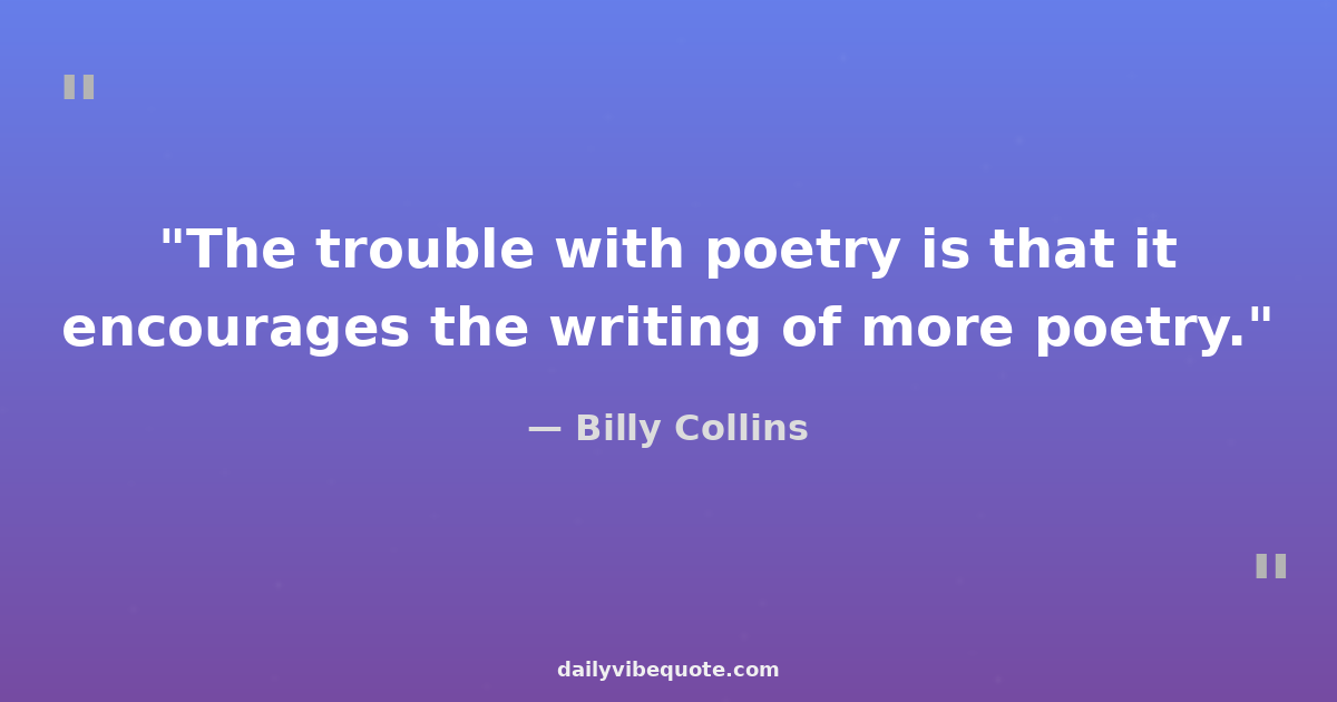 Billy Collins is an American poet known for his conversational and accessible style of poetry. He served as the Poet Laureate of the United States from 2001 to 2003. Collins' work often explores everyday experiences and observations with humor and wit, making poetry more approachable to a wider audience. His numerous poetry collections have garnered critical acclaim and have been widely celebrated for their simplicity and depth.