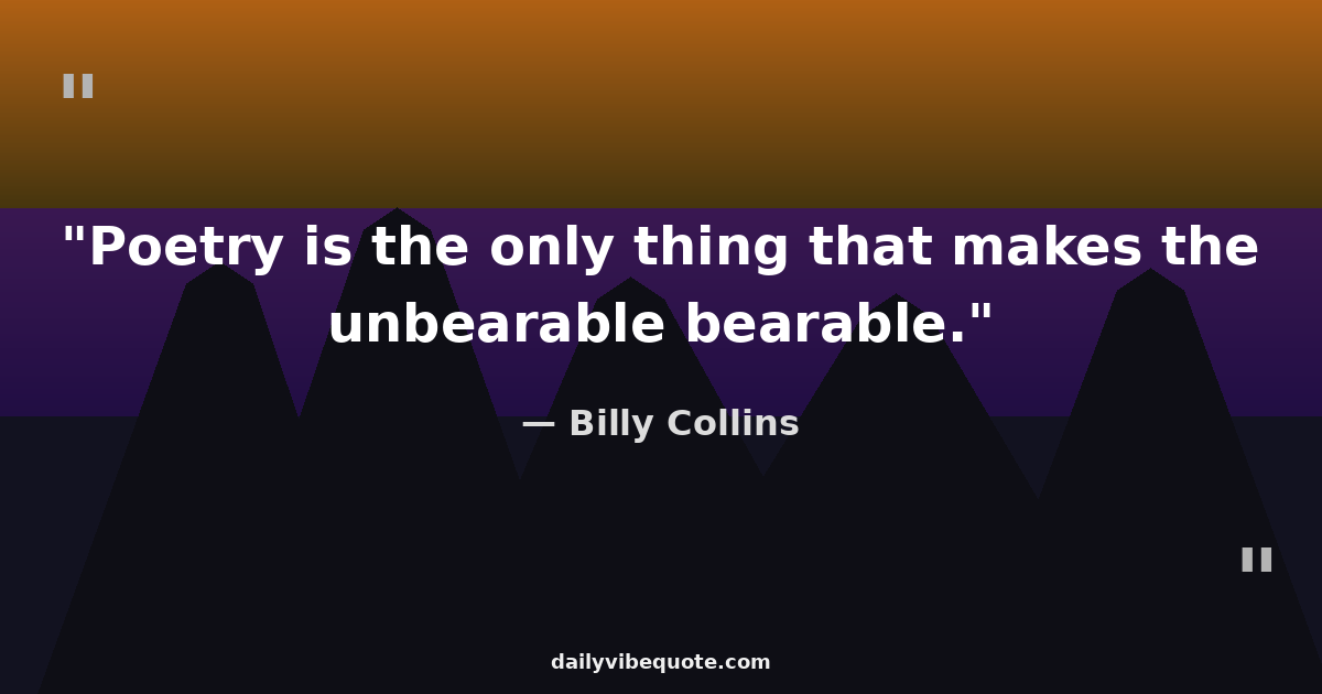 Billy Collins is an American poet known for his conversational and accessible style of poetry. He served as the Poet Laureate of the United States from 2001 to 2003. Collins' work often explores everyday experiences and observations with humor and wit, making poetry more approachable to a wider audience. His numerous poetry collections have garnered critical acclaim and have been widely celebrated for their simplicity and depth.
