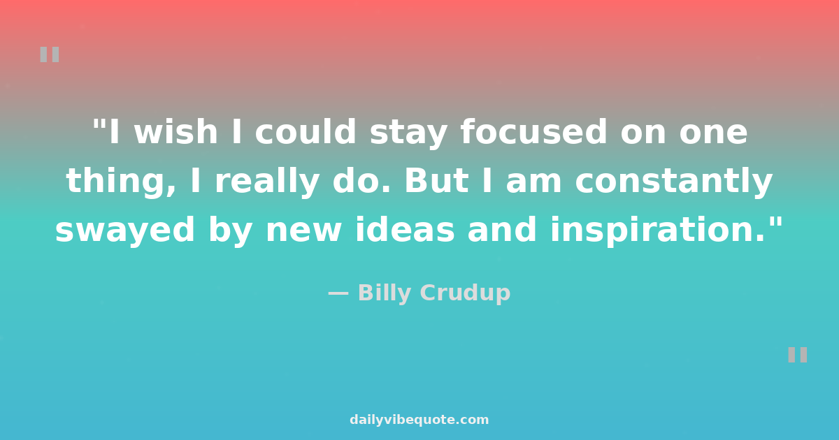 "I wish I could stay focused on one thing, I really do. But I am constantly swayed by new ideas and inspiration."