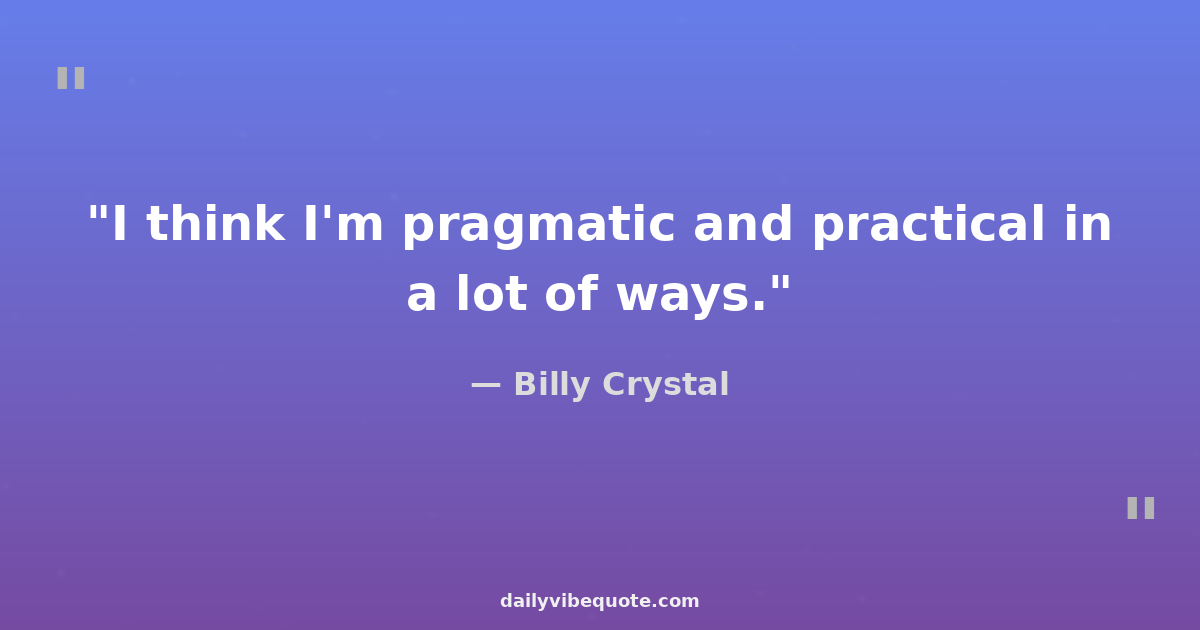 "I think I'm pragmatic and practical in a lot of ways."