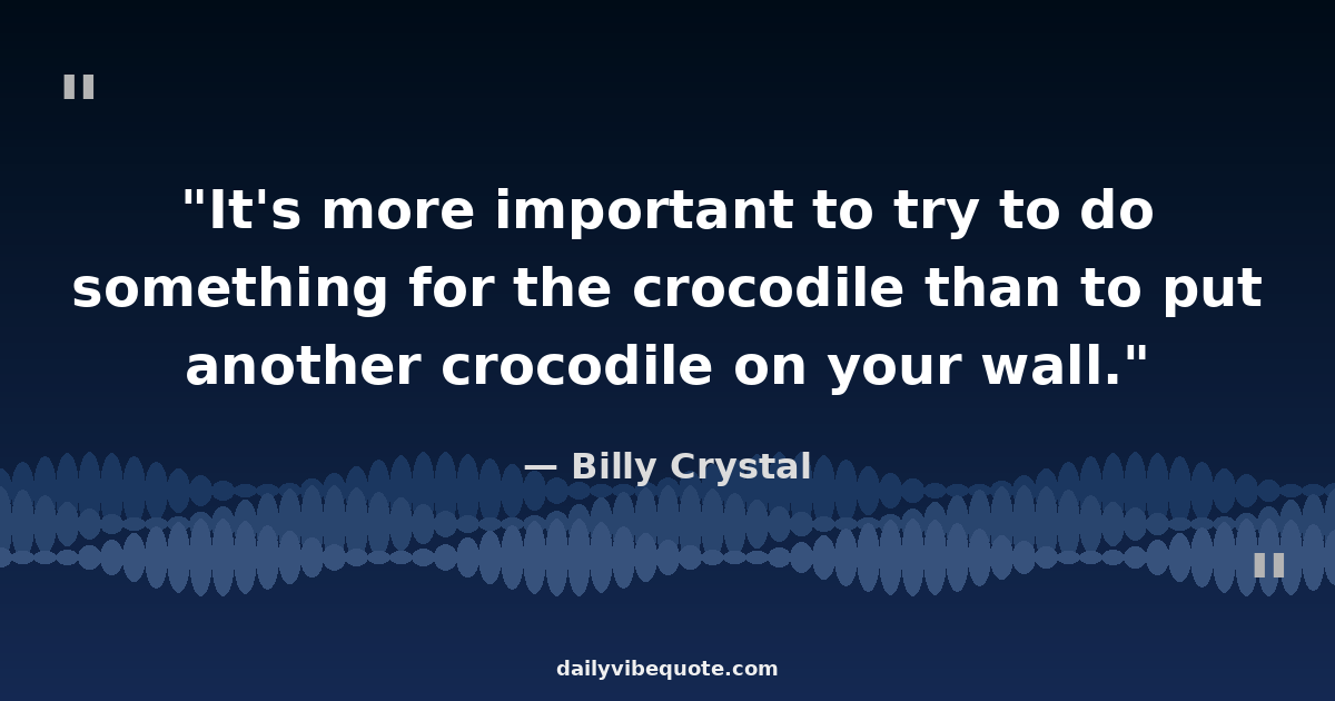 "It's more important to try to do something for the crocodile than to put another crocodile on your wall."