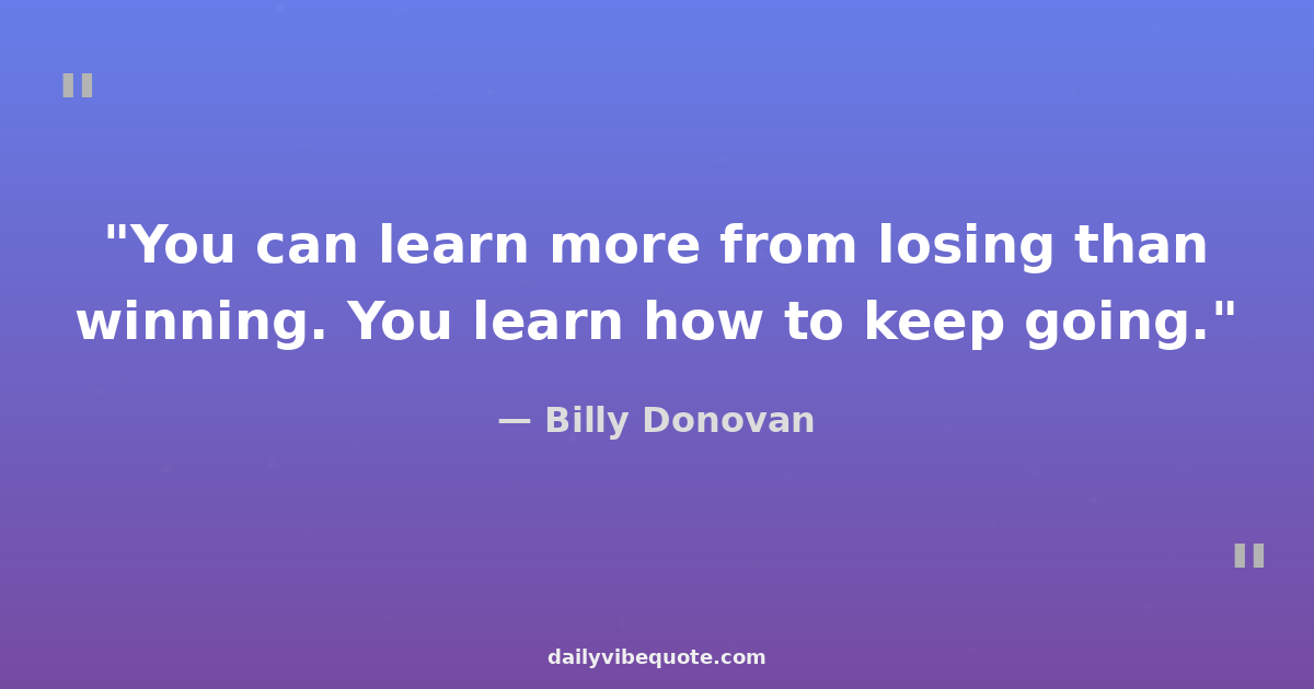 "You can learn more from losing than winning. You learn how to keep going."