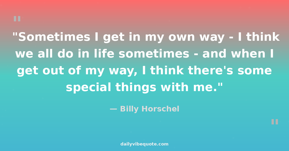 "Sometimes I get in my own way - I think we all do in life sometimes - and when I get out of my way, I think there's some special things with me."