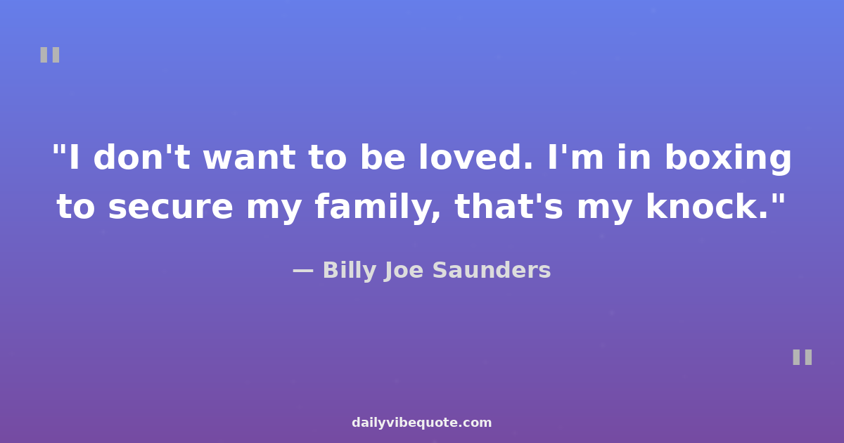 "I don't want to be loved. I'm in boxing to secure my family, that's my knock."