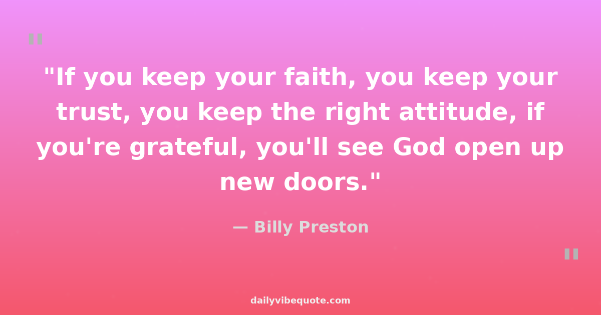 "If you keep your faith, you keep your trust, you keep the right attitude, if you're grateful, you'll see God open up new doors."