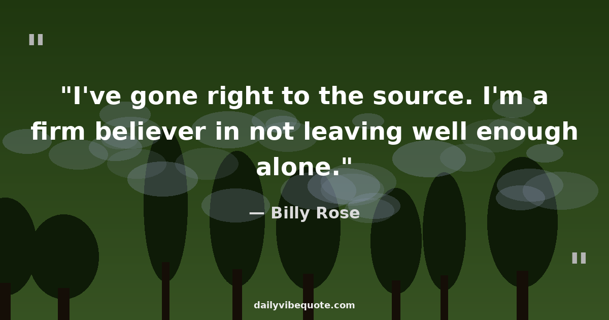 "I've gone right to the source. I'm a firm believer in not leaving well enough alone."