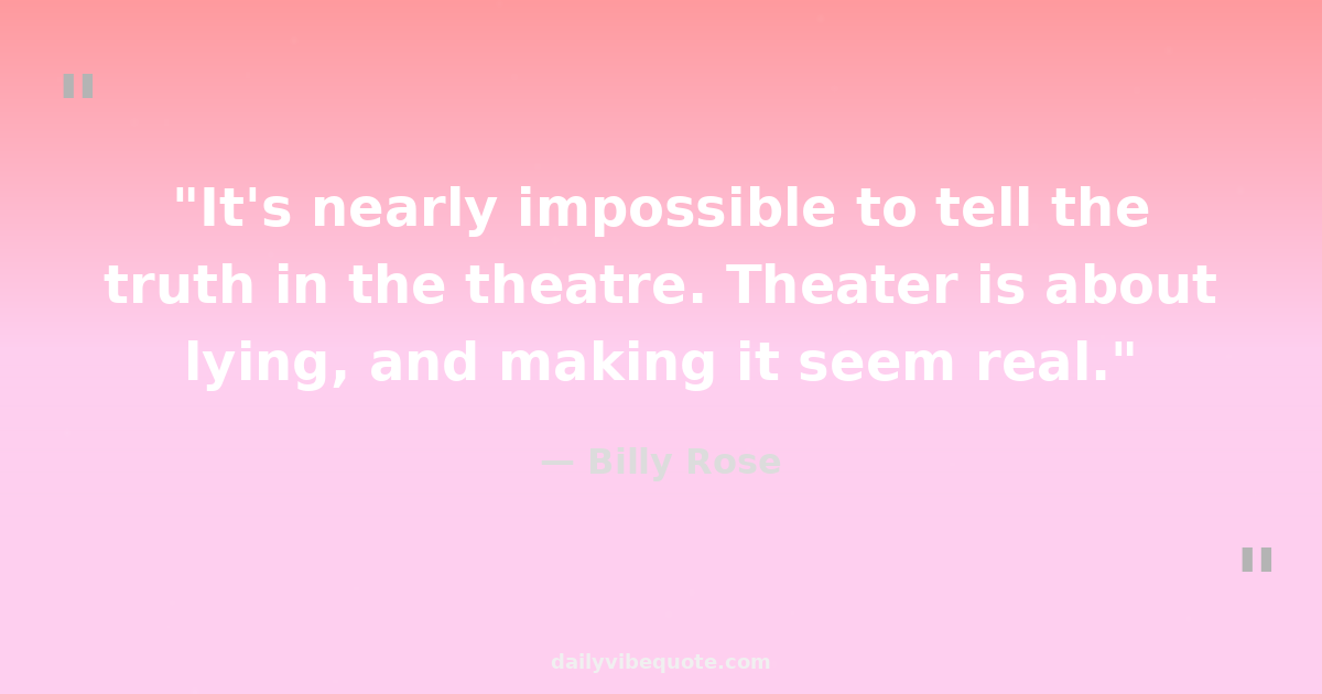"It's nearly impossible to tell the truth in the theatre. Theater is about lying, and making it seem real."