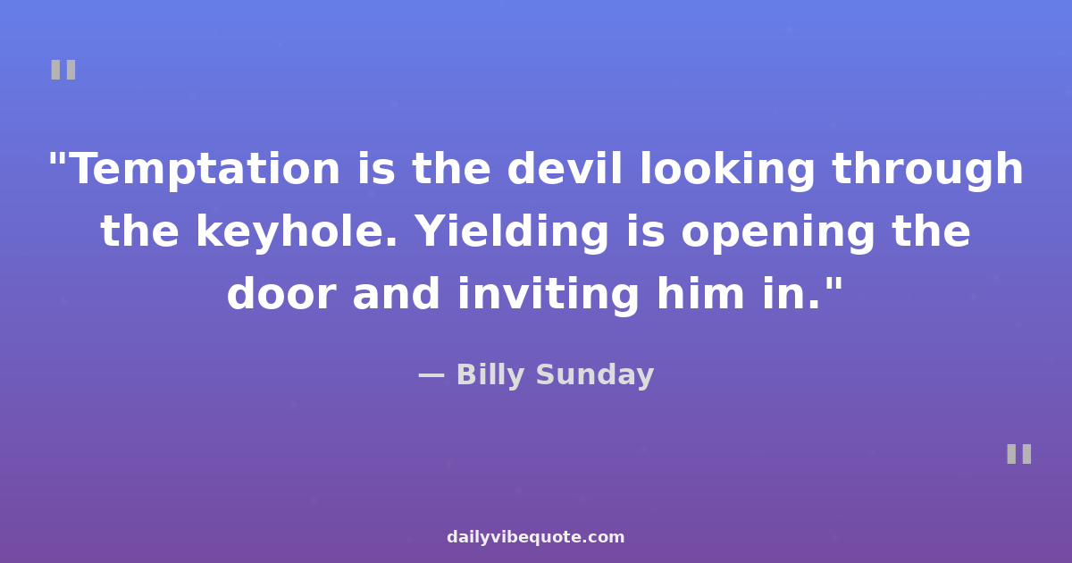 "Temptation is the devil looking through the keyhole. Yielding is opening the door and inviting him in."