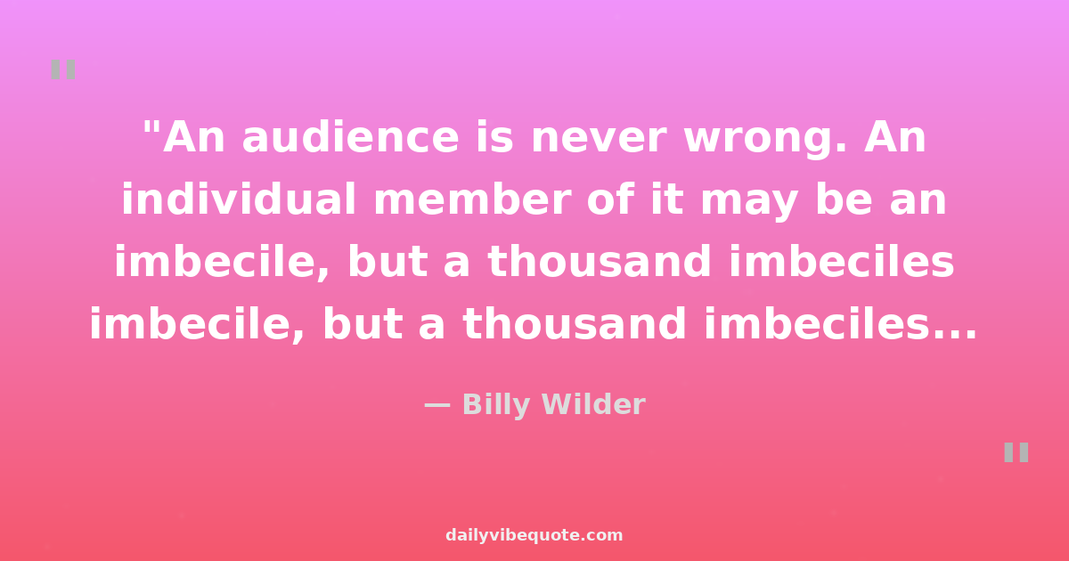 "An Audience is Never Wrong. An Individual Member of It May Be An Idiot, but a Thousand of Them Are Always Right."