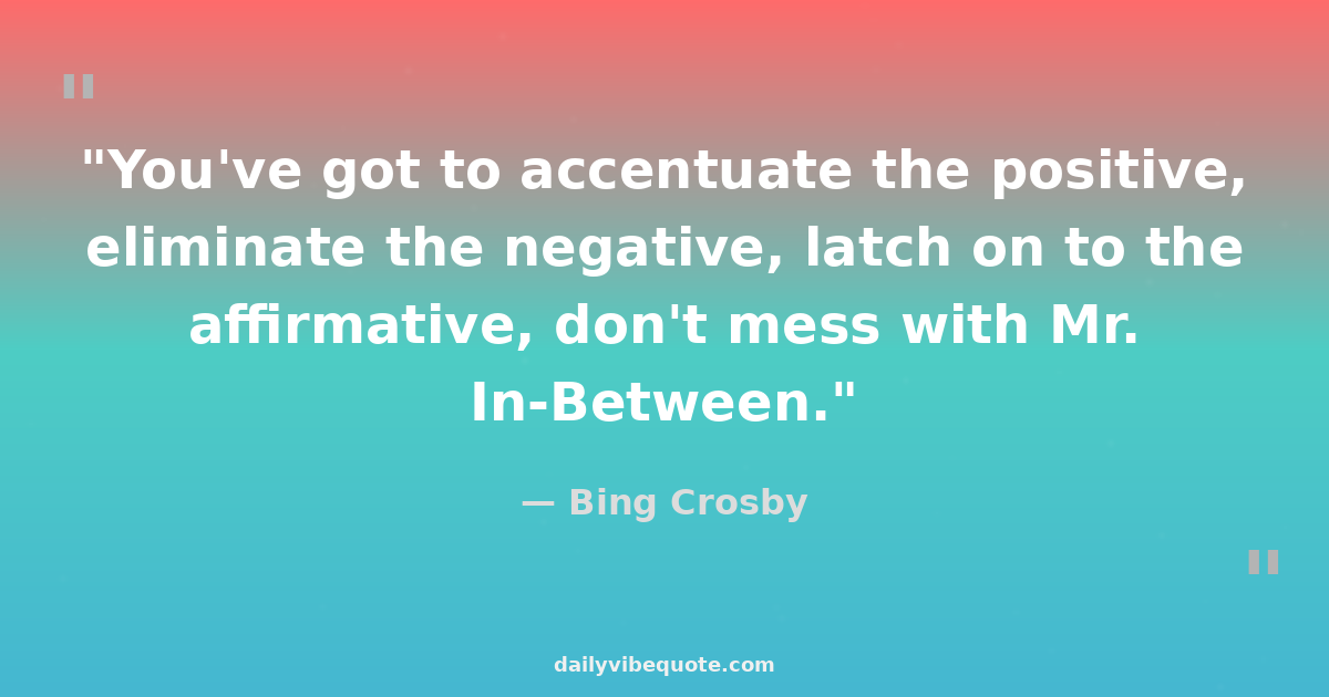 "You've got to accentuate the positive, eliminate the negative, latch on to the affirmative, don't mess with Mr. In-Between."