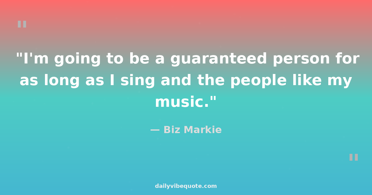 "I'm going to be a guaranteed person for as long as I sing and the people like my music."