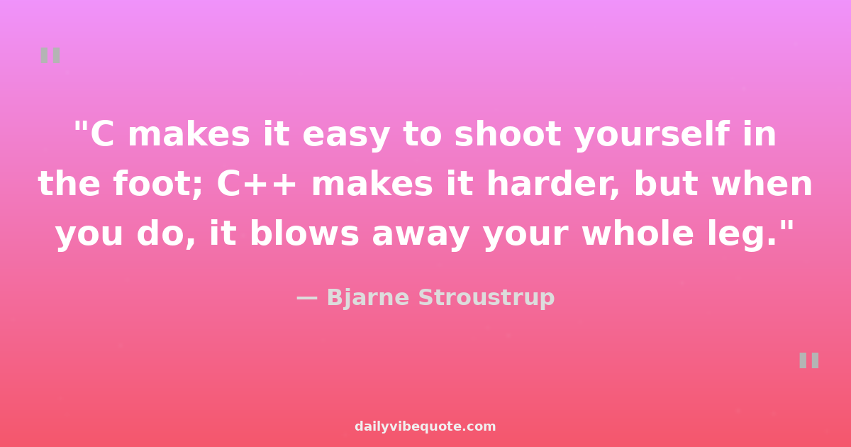"C makes it easy to shoot yourself in the foot; C++ makes it harder, but when you do, it blows away your whole leg."
