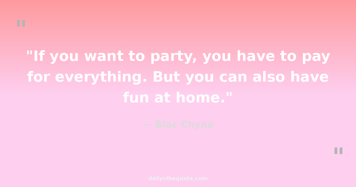 "If you want to party, you have to pay for everything. But you can also have fun at home."