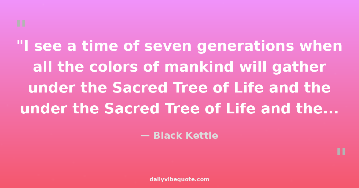 "I see a time of seven generations when all the colors of mankind will gather under the Sacred Tree of Life and the whole Earth will become one circle again."
