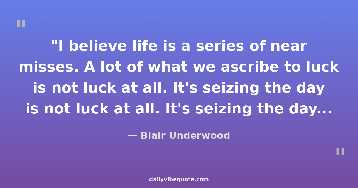 "I believe life is a series of near misses. A lot of what we ascribe to luck is not luck at all. It's seizing the day and accepting responsibility for your future."
