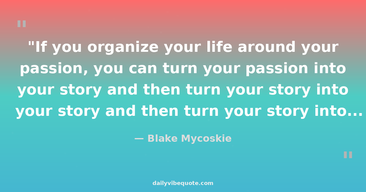 "If you organize your life around your passion, you can turn your passion into your story and then turn your story into something bigger―something that matters."