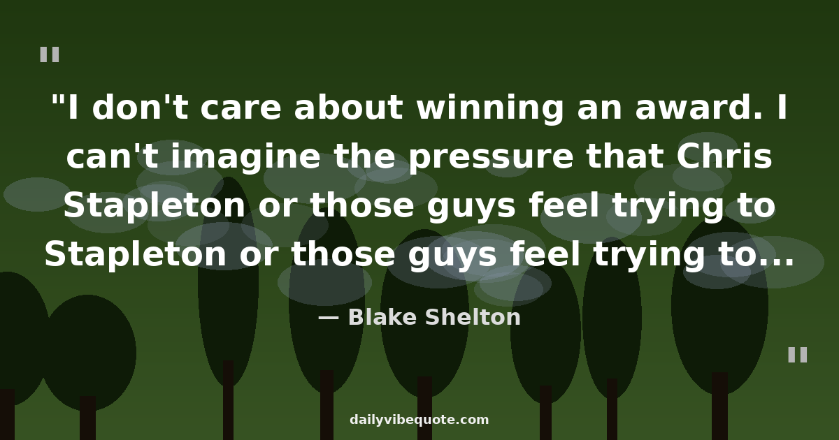 "I don't care about winning an award. I can't imagine the pressure that Chris Stapleton or those guys feel trying to live up to the expectations year after year."