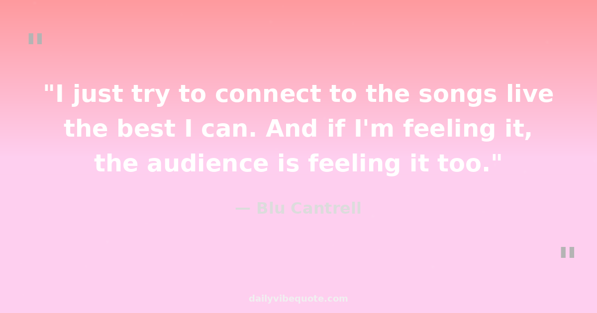 "I just try to connect to the songs live the best I can. And if I'm feeling it, the audience is feeling it too."