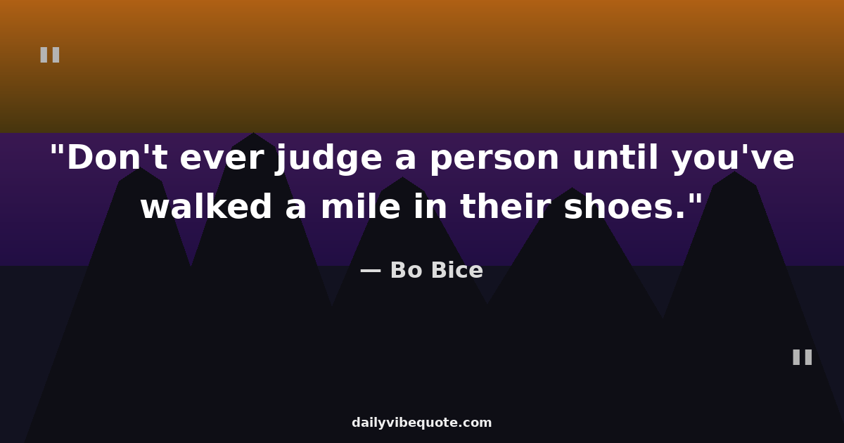 "Don't ever judge a person until you've walked a mile in their shoes."