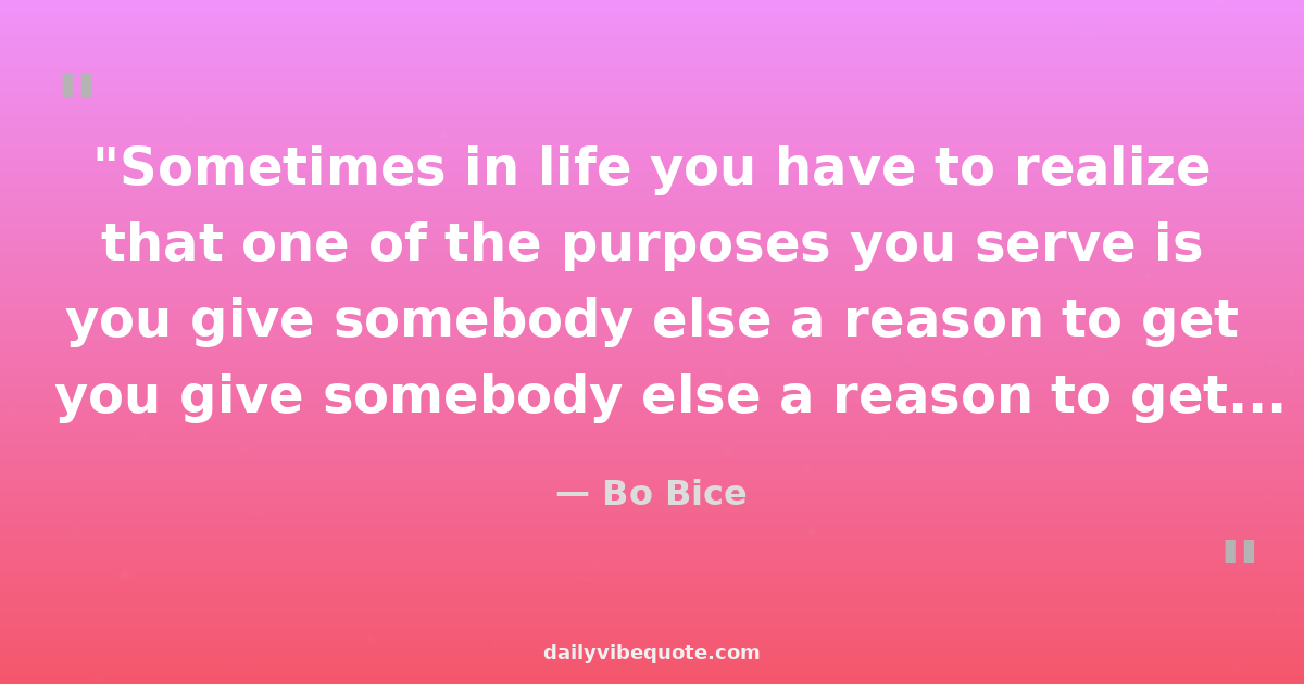 "Sometimes in life you have to realize that one of the purposes you serve is you give somebody else a reason to get up in the morning... That's a pretty good purpose to serve."
