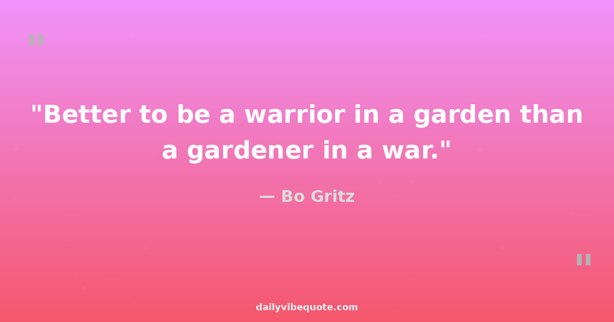 "Better to be a warrior in a garden than a gardener in a war."