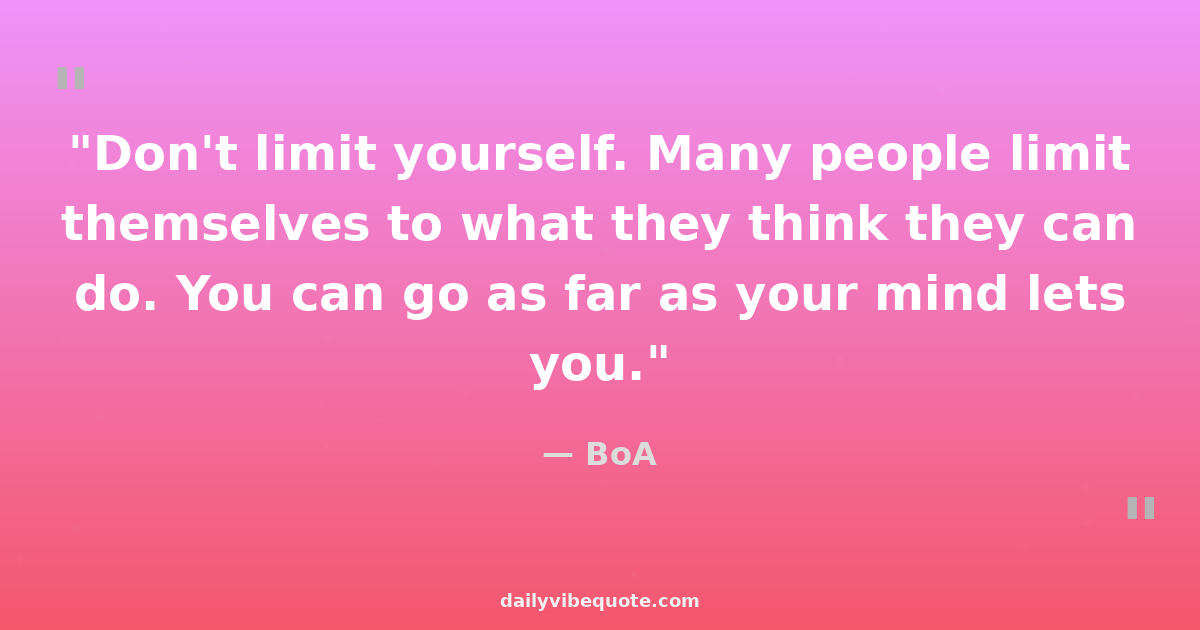 "Don't limit yourself. Many people limit themselves to what they think they can do. You can go as far as your mind lets you."