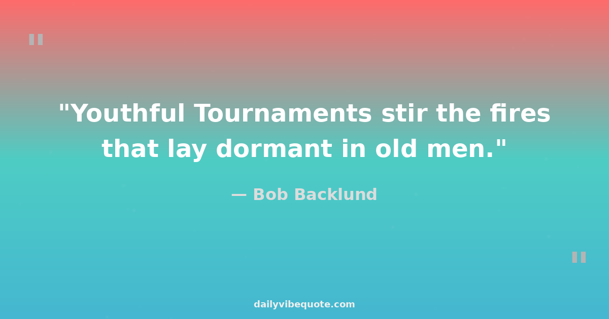 "Youthful Tournaments stir the fires that lay dormant in old men."