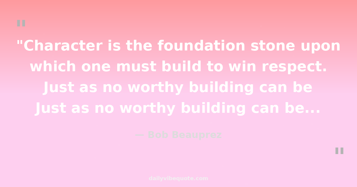 "Character is the foundation stone upon which one must build to win respect. Just as no worthy building can be erected on a weak foundation, so no lasting reputation worthy of respect can be built on a weak character."