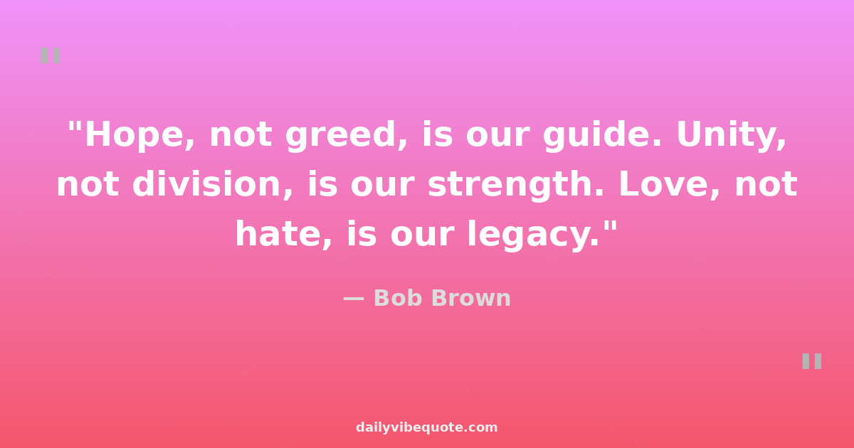 "Hope, not greed, is our guide. Unity, not division, is our strength. Love, not hate, is our legacy."