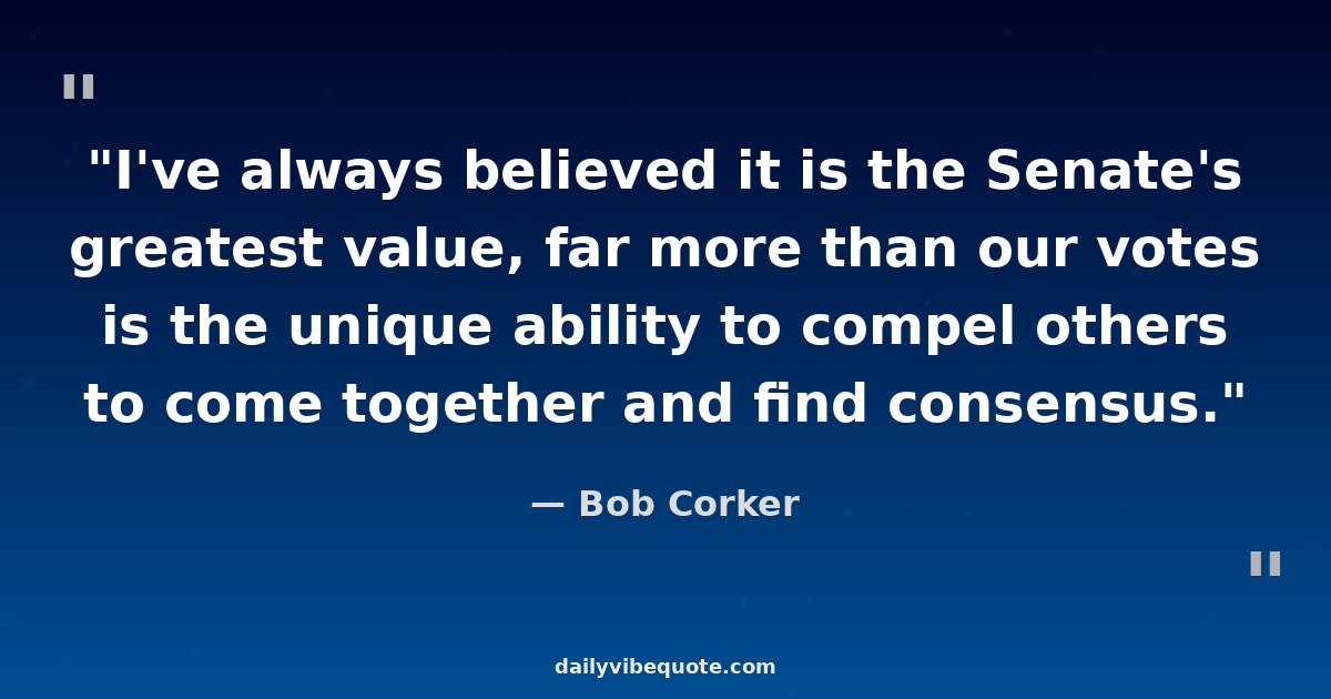 "I've always believed it is the Senate's greatest value, far more than our votes is the unique ability to compel others to come together and find consensus."