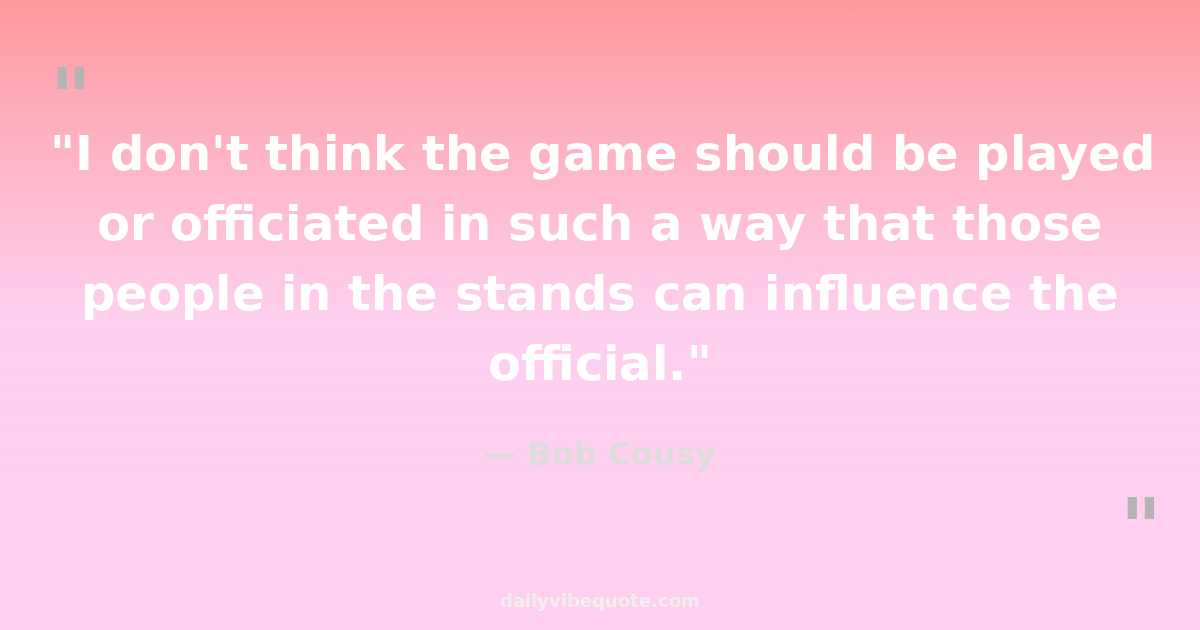 "I don't think the game should be played or officiated in such a way that those people in the stands can influence the official."