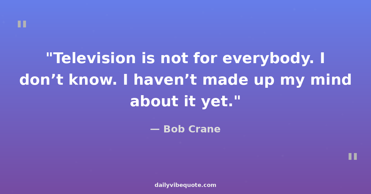 "Television is not for everybody. I don’t know. I haven’t made up my mind about it yet."