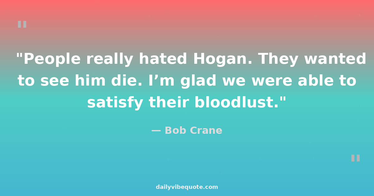 Bob Crane was an American actor and disc jockey, best known for his role as Colonel Robert E. Hogan in the television sitcom Hogan's Heroes. He began his career as a radio broadcaster before transitioning to acting in the early 1960s. Crane's role in Hogan's Heroes brought him widespread fame and success, earning him two Emmy nominations. Tragically, his life was cut short at the age of 49 due to his unsolved murder in 1978.