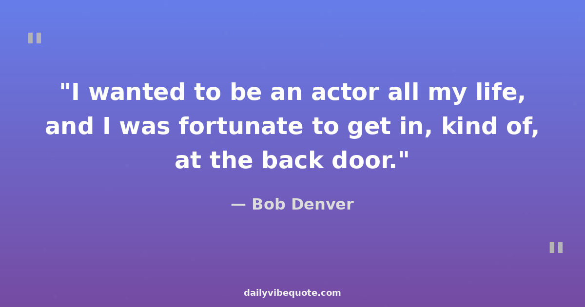 "I wanted to be an actor all my life, and I was fortunate to get in, kind of, at the back door."