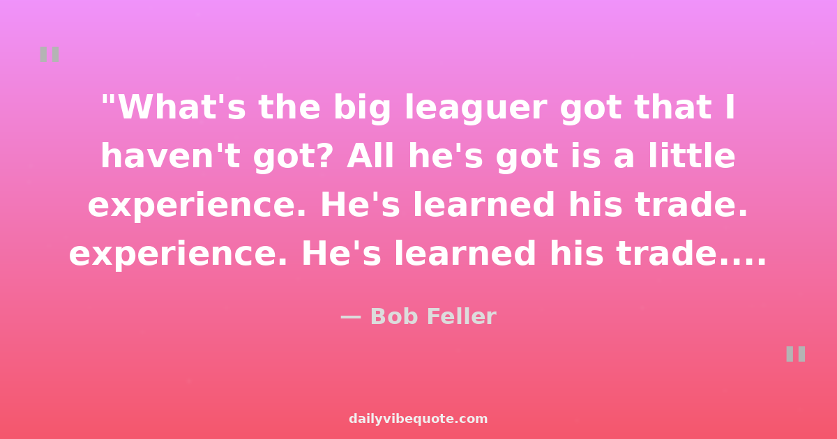 "What's the big leaguer got that I haven't got? All he's got is a little experience. He's learned his trade. Tradesmen have to serve an apprenticeship, don't they?"