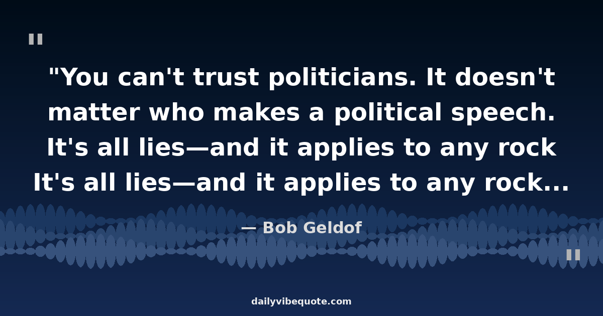 "You can't trust politicians. It doesn't matter who makes a political speech. It's all lies—and it applies to any rock star who wants to make a political speech as well."