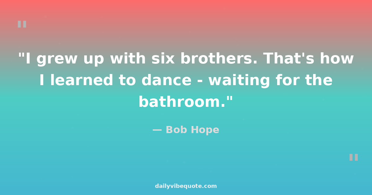 "I grew up with six brothers. That's how I learned to dance - waiting for the bathroom."