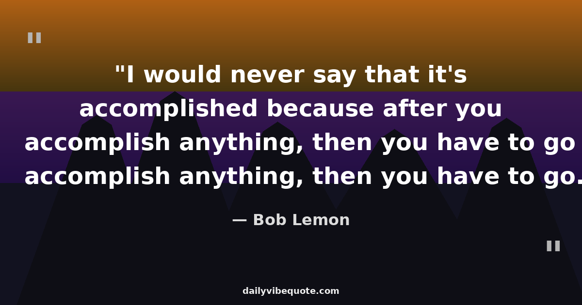 "I would never say that it's accomplished because after you accomplish anything, then you have to go out and try to accomplish something else."