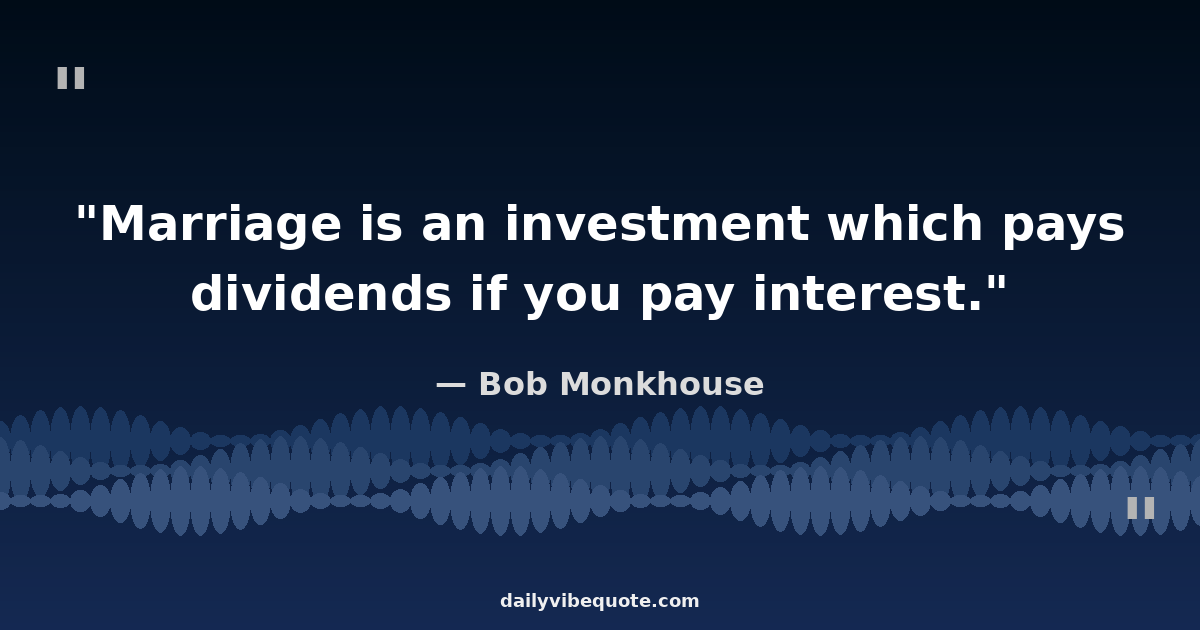 "Marriage is an investment which pays dividends if you pay interest."