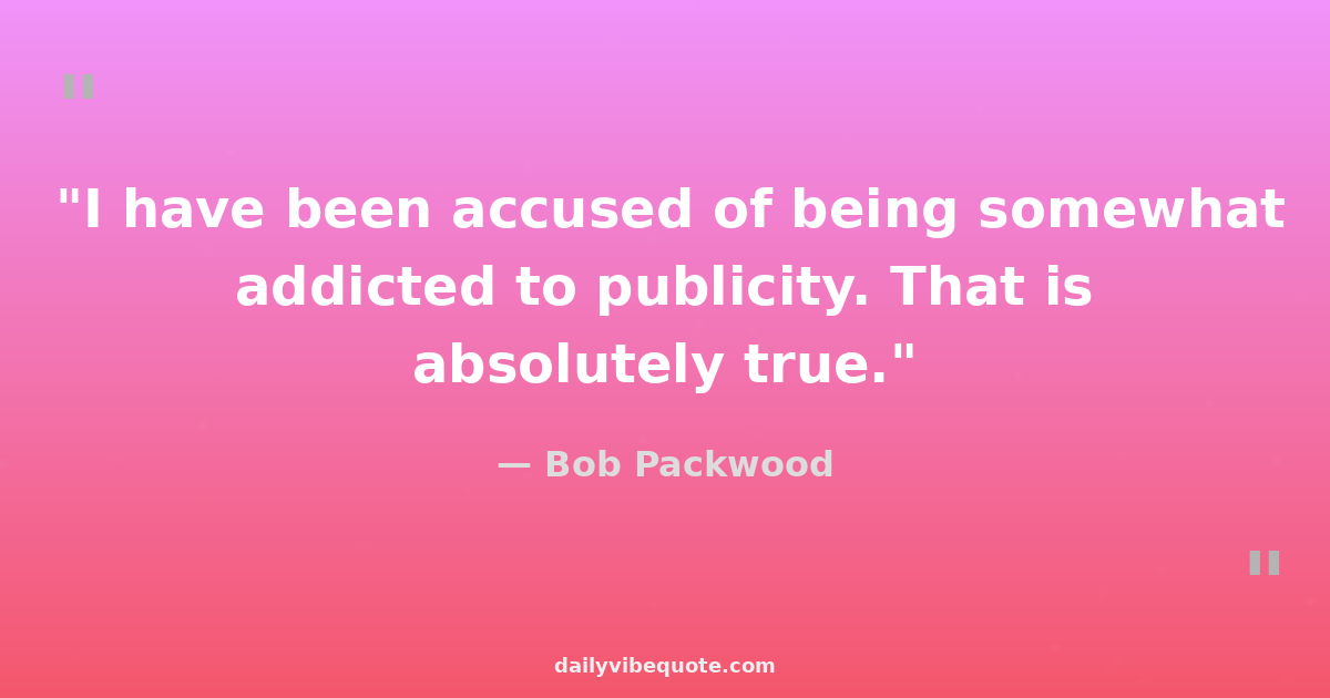 "I have been accused of being somewhat addicted to publicity. That is absolutely true."