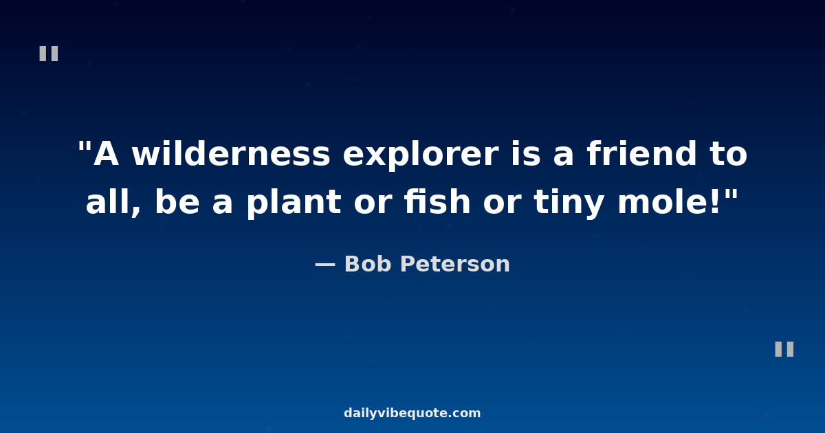 "A wilderness explorer is a friend to all, be a plant or fish or tiny mole!"