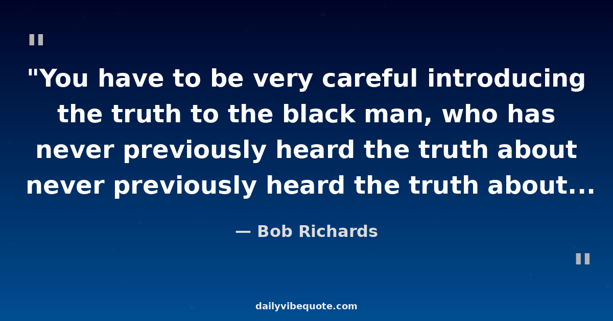 "You have to be very careful introducing the truth to the black man, who has never previously heard the truth about himself. The black brother is so brainwashed that he may reject the truth when he first hears it."