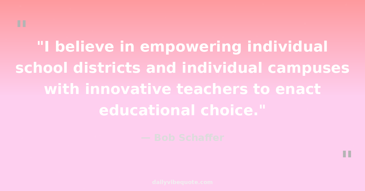 "I believe in empowering individual school districts and individual campuses with innovative teachers to enact educational choice."